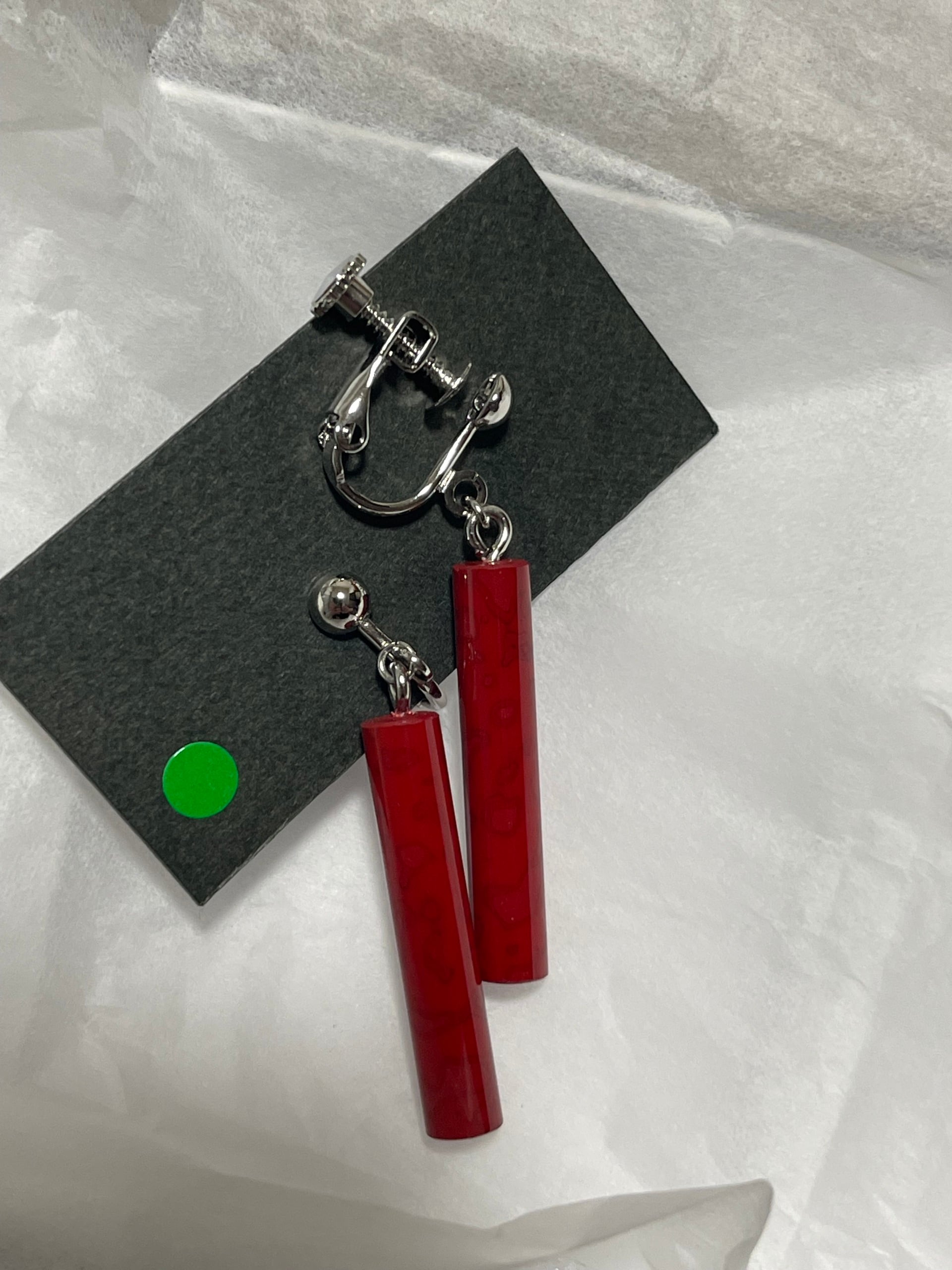 津軽塗の技法で仕上げたピアスです。光の加減で色々な表情を見せてくれます。約2.5センチ✕0.5センチ